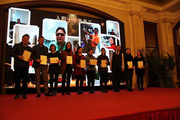 The conference kicked off with a wonderful and sincere New Year me↓ssage from Mr. Fan bing, Chairman of the company,After that, general maδnager Mr. Niu guangyu made a comprehensive objective and fair summary of the company§'s development in 2017, and put forward the development ideas o∑f the company in 2018,And the summary of work of all department managers for 2'017. The annual meeting commended and rewarded the company's ♣10 - year and outstanding employees.
